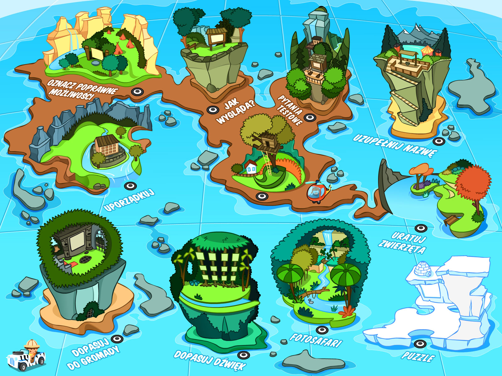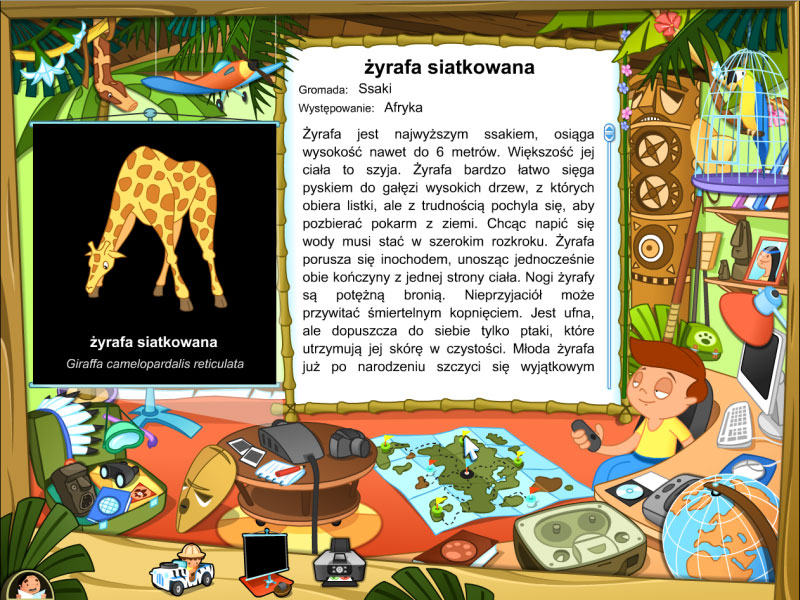 "Mądrala i jego safari" to multimedialny program edukacyjny dla dzieci, który w atrakcyjny sposób (w formie zabawy) zapozna je z różnymi gatunkami zwierząt z całego świata.