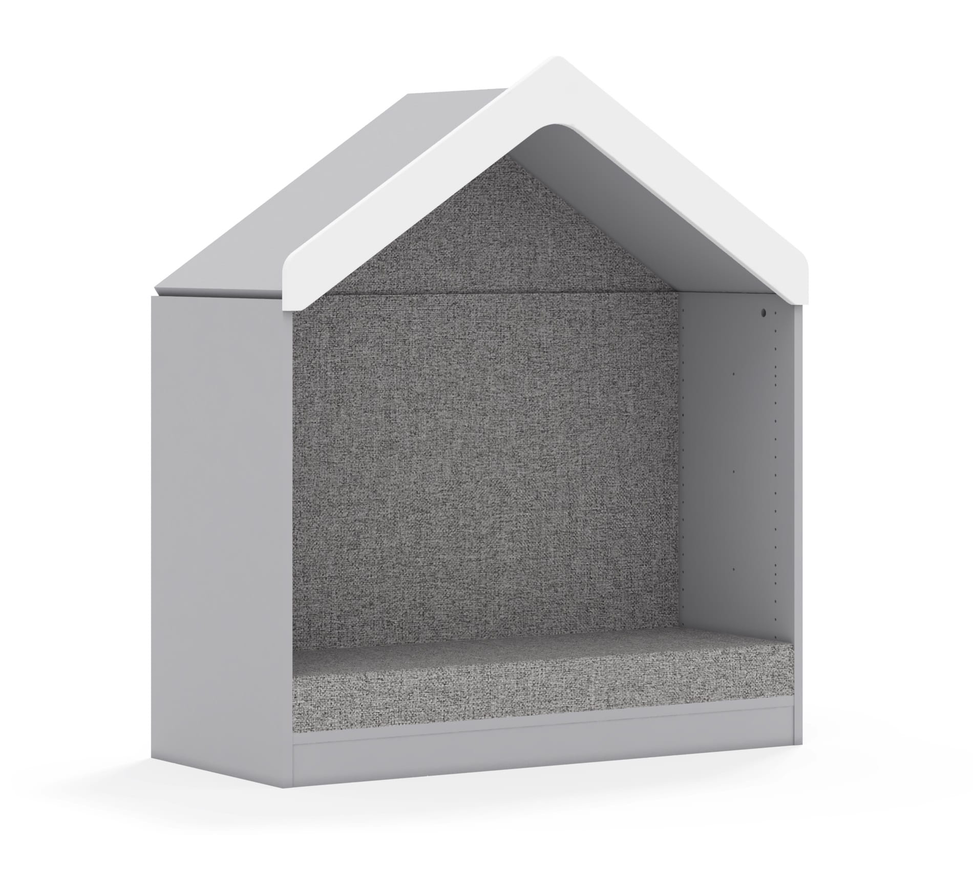 Kolekcja mebli Blox Base to wszechstronne i eleganckie rozwiązanie do każdego wnętrza. Fronty szafek i szuflad można wybierać spośród trzech kolorów: biały, szary, dąb kamienny, co pozwala na ich dowolne miksowanie i tworzenie unikalnych kompozycji kolorystycznych. Kolekcja Blox Base łączy funkcjonalność z nowoczesnym designem, oferując elastyczność w aranżacji przestrzeni i doskonałe dopasowanie do indywidualnych gustów użytkowników. Domek tapicerowany o wymiarach 1049x466x1223 mm z korpusem wykonanym z płyty melaminowanej o grubości 18 mm, dostępny w kolorach: biały, szary, dąb kamienny. Plecy mebla z płyty meblowej stabilizujące mebel, umożliwiając jego bezpieczne użytkowanie jako siedziska. Montaż elementu odbywa się według prostego systemu RAFIX, czyli "wepnij element i zatrzaśnij". Miękkie, tapicerowane siedzisko wraz z oparciem zapewniające komfort podczas siedzenia. Wypełnienie siedziska wykonane z usztywnionej pianki poliuretanowej odpornej na wgniecenia o gęstości 40 kg/m3. Pianka o grubości 50 mm obłożona tkaniną posiadającą certyfikat trudnopalności, wykonaną z poliestru 100% o gramaturze 370 g/m² i ścieralności 80 000 cykli lub tkaniną wykonaną z PCW 100% o gramaturze 550g/m² i ścieralności 30 000 cykli. Dostępna w 18 różnych kolorach, co pozwala na łatwe dopasowanie do każdego wnętrza. Cokół w kolorze korpusu chroniący dolne krawędzie mebla przed uszkodzeniami i zabrudzeniami. Daszek stanowi atrakcyjny dodatek do linii mebli BLOX. Korona daszka wykonana z solidnej płyty MDF o grubości 16 mm, malowana i lakierowana farbą posiadającą atest Polskiego Towarzystwa Alergologicznego (PTA). Przód i boki daszku w kolorze białym, tył w kolorze korpusu. Cała powierzchnia daszka posiada zaokrąglone krawędzie, uzyskane dzięki precyzyjnemu wycinaniu na ploterze frezującym, co zwiększa bezpieczeństwo użytkowania. Element przymocowany do korpusu mebla za pomocą elementów pośredniczących. Domek zapewnia wygodne miejsce do siedzenia i wyjątkowego charakteru.