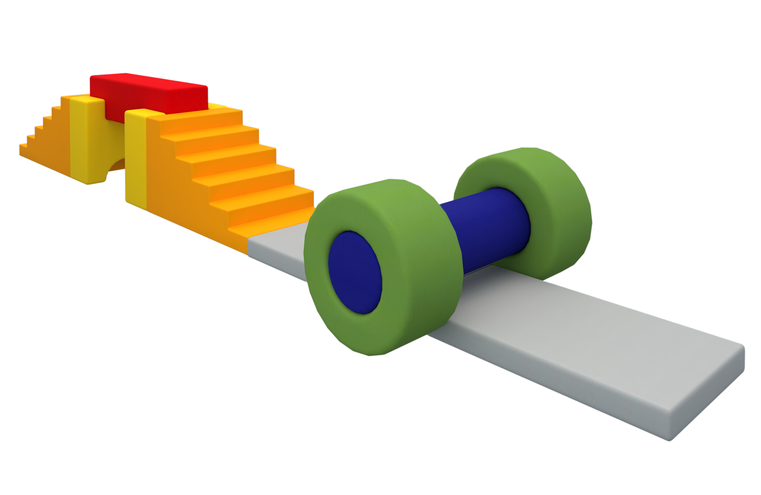 Plac zabaw z pianek to innowacyjne i bezpieczne rozwiązanie, które przynosi mnóstwo radości i korzyści rozwojowych dla dzieci. Wypełnienie wykonane z usztywnionej pianki poliuretanowej odpornej na wgniecenia o gęstości 25 kg/m3. Pokrowiec wykonany z tkaniny posiadającej certyfikat trudnopalności, wykonanej z PCW 100% o gramaturze 550g/m² i ścieralności 30 000 cykli. Materiał antybakteryjny umożliwiający łatwe zachowanie czystości. Pokrowiec zdejmowany, zasuwany na zamek błyskawiczny posiadający certyfikat 23.HCN.39637. Od spodniej warstwy kształtki piankowe posiadają warstwę antypoślizgową. Dzięki możliwości łączenia różnych pianek można tworzyć unikalne konstrukcje, które stymulują kreatywność i interakcję wśród dzieci. Zestaw zawiera: walec (300x1200 mm, kolor granatowy); 2x pierścień (600x300 mm, kolor zielony), materac (1100x800x100 mm, kolor szary); słupek (1200x300x300 mm, kolor czerwony); 2x schody (1100x800x600 mm, kolor pomarańczowy);2x litera H (600x300x600 mm, kolor żółty).