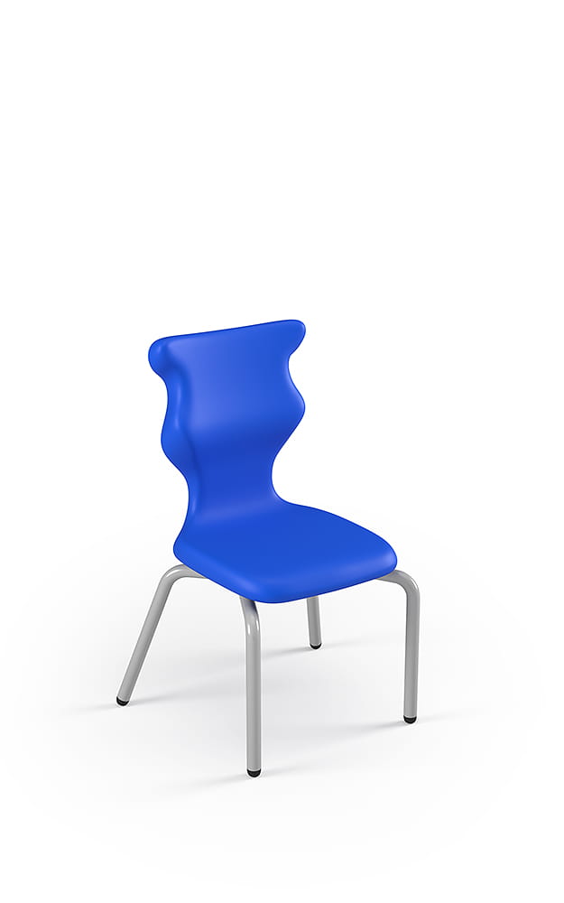 Ergonomiczne siedzisko o wklęsło-wypukłej formie zapewnia odpowiednie podparcie pleców, wykonane metodą rozdmuchu z Polietylenu HDPE, co gwarantuje wytrzymałość i łatwość w utrzymaniu czystości. Właściwości ergonomiczne siedziska potwierdzone przeprowadzonymi i udokumentowanymi badaniami. Z tyłu siedziska umieszczono uchywyt do łatwego przenoszenia. Siedzisko posiada atest higeniczny potwierdzający, że produkt jest bezpieczny oraz przystosowany do pomieszczeń w szkołach, przedszkolach i mieszkaniach. Krzesło dostępne w 7 rozmiarach (od 0 do 6) oraz oferowane w 12 kolorach (fioletowy, pastelowy fioletowy, pomarańczowy, żółty, czerwony, zielony, pastelowy zielony, niebieski, pastelowy niebieski, szary, jasny szary, czarny). Stelaż metalowy wykonany z rury 22x1,5 mm gwarantujący stabilność i trwałość konstrukcji. Możliwość sztaplowania krzeseł. Stelaż wyprofilowany w taki sposób aby zapobiec wywróceniu się krzesła podczas bujania się przez uczniów. Dostępny w kolorze szarym (RAL 9006). Stopki antypoślizgowe wykonane z tworzywa sztucznego w kolorze białym zabezpieczające powierzchnie przed zarysowaniami. Krzesło posiada certyfikat zgodności z normą PN-EN 1729-1:2016-02 oraz PN-EN 1729-2+2016-02 wydany przez jednostkę certyfikującą posiadającą akredytację Polskiego Centrum Akredytacji.