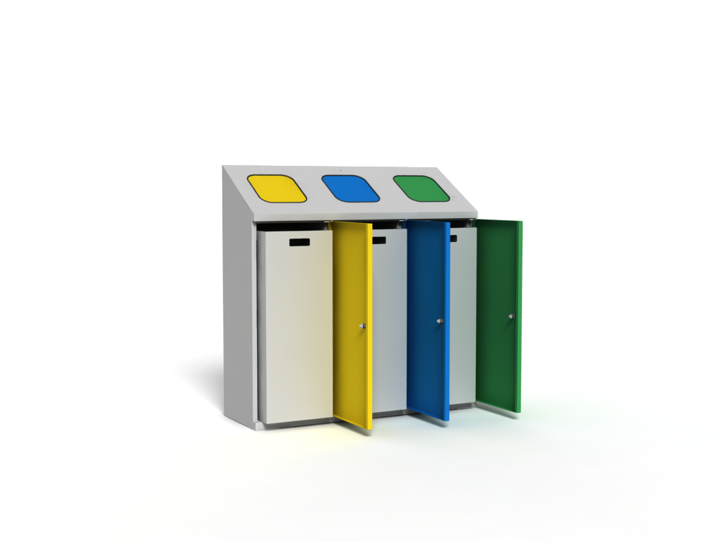 Pojemnik do segregacji odpadów (3 pojemniki) 1065x350x1070 korpus szary/front szary