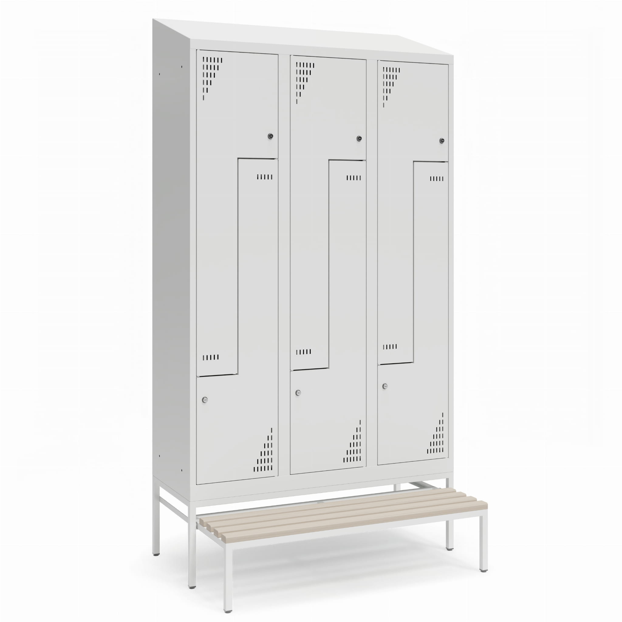 Szafa ubraniowa TYPU L z wysuwaną ławeczką 1200K3/2 DSZ 1200x800x1950 korpus antracyt/front niebieski