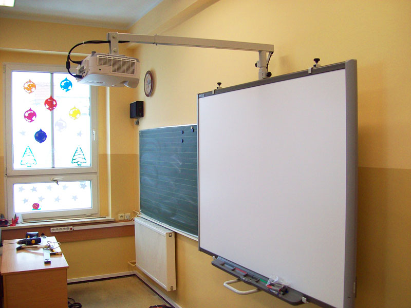 Wysięgnik pozwala na zamontowanie projektora tuż nad tablicą, co minimalizuje efekt cienia.