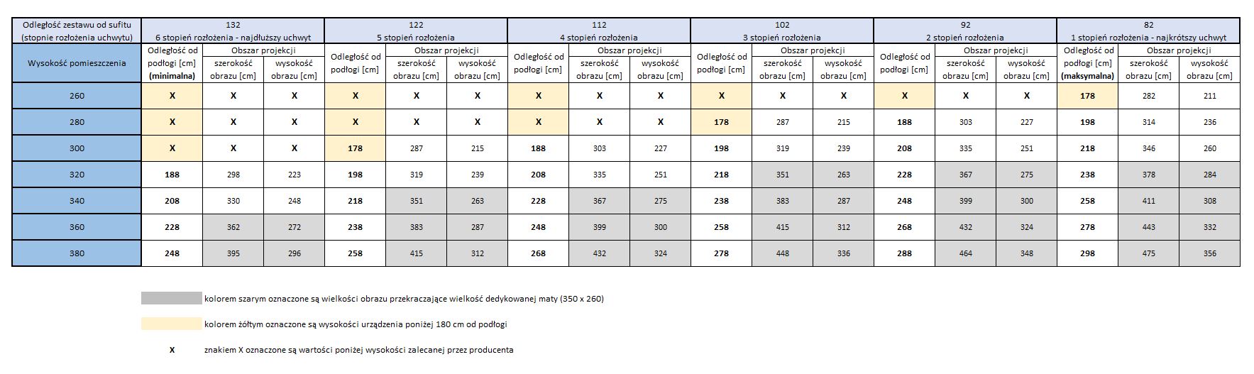 Maksymalna wysokość montażu (od podłogi do urządzenia): 250 cm