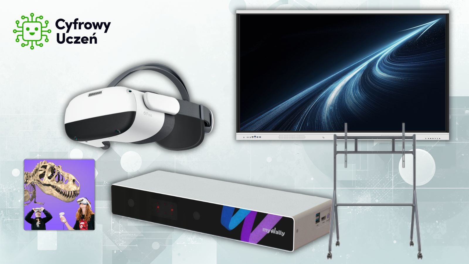 Kluczowym elementem zestawu jest technologia wirtualnej rzeczywistości (VR). Zestaw gogli PICO NEO 3 Plus z licencją PICO Business Suite (bezterminową) umożliwiają prowadzenie immersyjnych zajęć, podczas których uczniowie mogą doświadczać treści edukacyjnych w sposób niedostępny w tradycyjnej klasie - np. eksplorować wnętrze komórki, odwiedzać miejsca historyczne czy obserwować zjawiska fizyczne w praktyce.